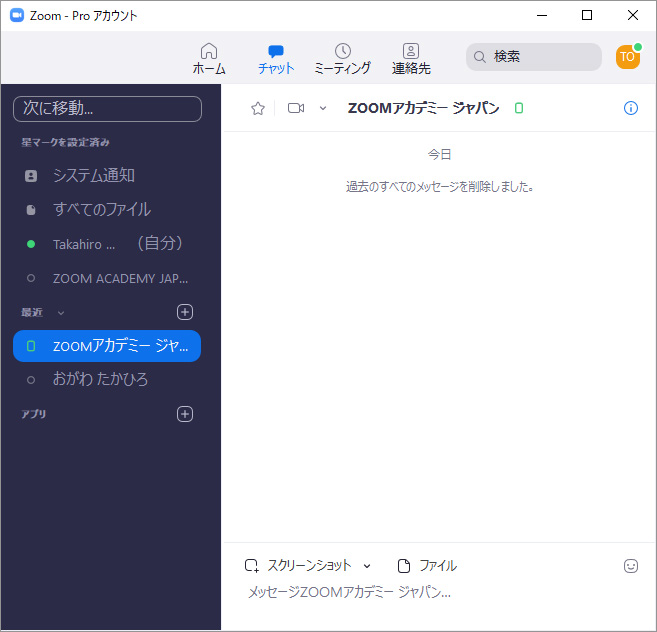 起動画面から「チャット」を選択することで、チャットが表示されます。