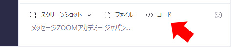 「コードスニペットボタンを表示」にチェックを付けると、チャットウィンドーの下に「</>コード」と表示されます。