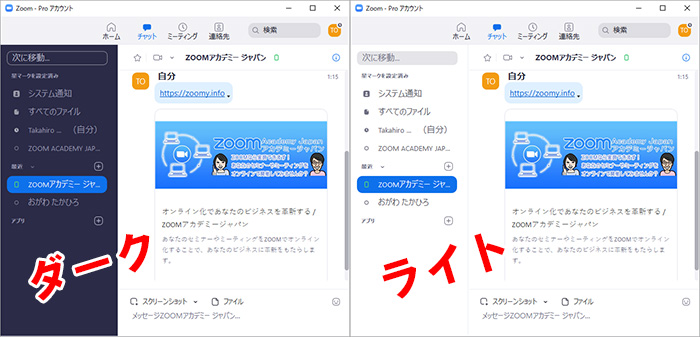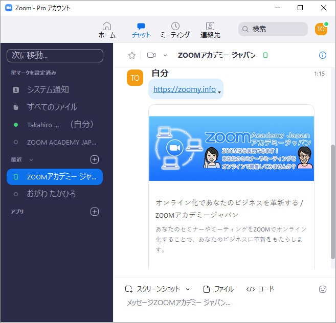 これは、Zoomミーティングの中で行うチャットとは連携していません。