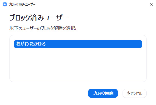 ブロックを解除する相手を選択して、「ブロック解除」をクリックすれば、ブロックを解除することができます。