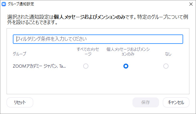 - 個人メセージおよびメンションのみプッシュ通知をする
