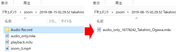 ここにチェックを付けると、記録されたフォルタの中に「Audio Record」というフォルダが作成され、その中に、音声データ(m4a)が生成されます。