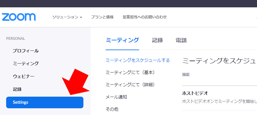 バーチャル背景を使うには、zoom.us のSettings を開き、
