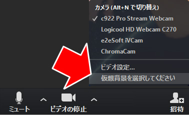 画像を選択すると、バーチャル背景が設定されます。