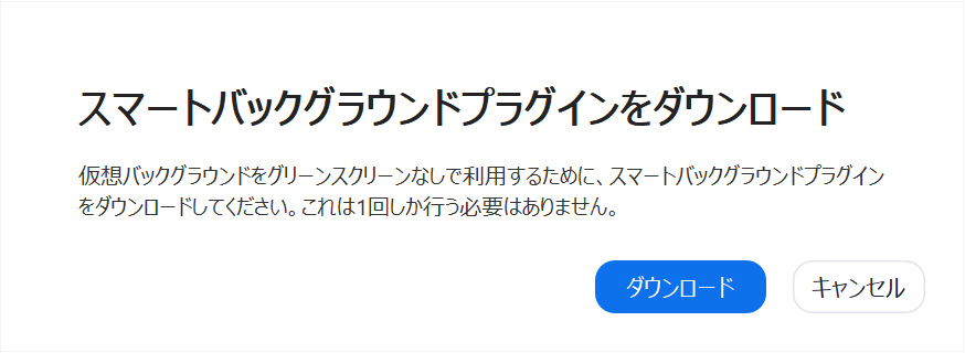 グリーンスクリーンを使わなくてもバーチャル背景ができるパソコンの場合、このようなウィンドーが表示されるので、ダウンロード&インストールしてください。